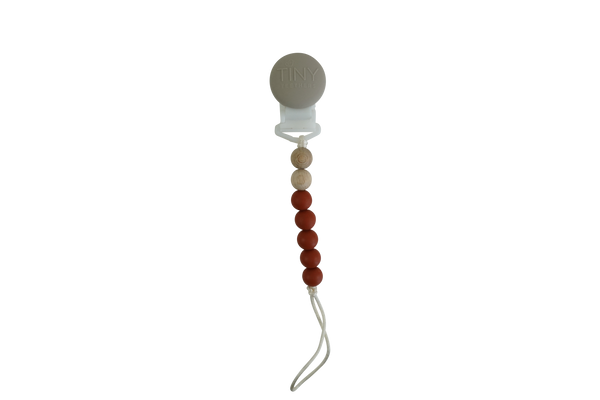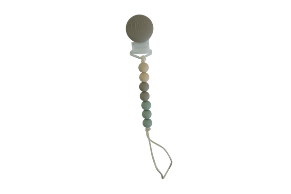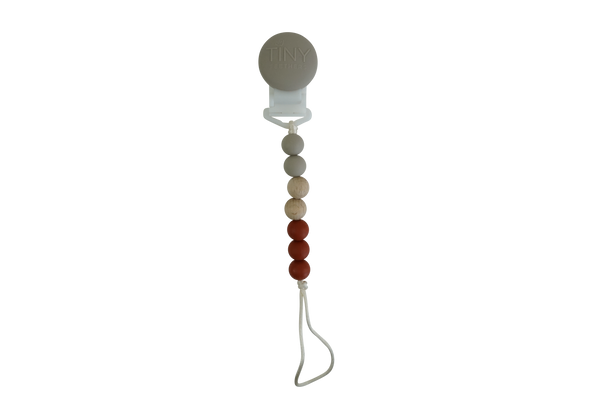 Our innovative silicone clip is designed with few moving parts and no metal. This allows them to teethe on the clip itself, unlike the wood or metal ones.