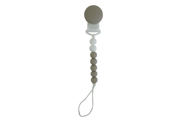 Our innovative silicone clip is designed with few moving parts and no metal. This allows them to teethe on the clip itself, unlike the wood or metal ones.